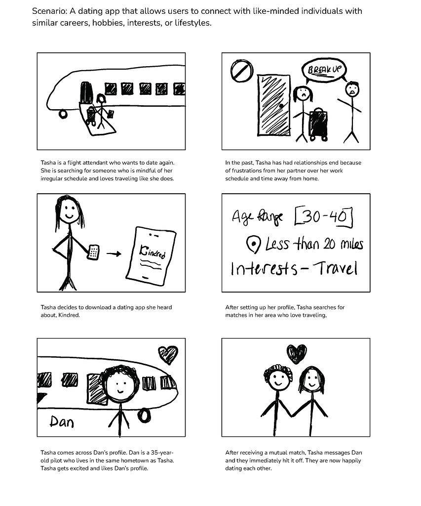 Personas– Defines users’ situations and experiences with dating apps.